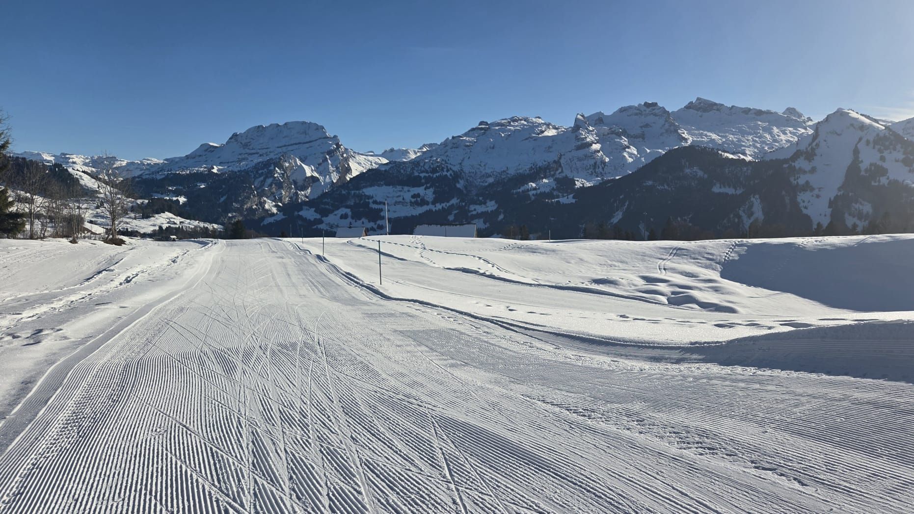Nicht präpariert ist die obere Runde beim Restaurant sowie die grosse Zimmerstaldenrunde. Auch kann die klassische Spur nicht gezogen werden.